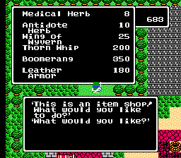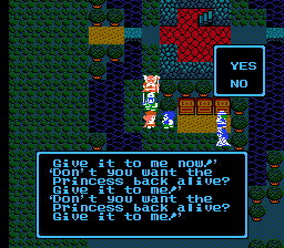 When you are ready, head north and east to Frenor. It is not a long trip, and when you get there you’ll see a few people rushing to a scene at the Inn. The “princess” has been captured by some thieves and everyone implores you to help if you can. Asking around, you’ll learn of the Golden Bracelet that they want, and that the southern cave houses this item (talk to the little boy during the day and the pirate at night for this information). You may want to get a Chain Mail or something else at the item shop before you go, and I’d also probably build up to level 7 or 8 maybe as these monsters get harder both on the way to the cave and in it.