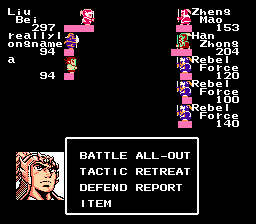 Guan Yu’s name is actually "reallylongnamenosrslythistime". Unfortunately, the game only displays 14 characters in-battle (curiously, 15 in general-screen).