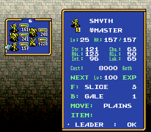 KeymasterNice to hear you are still doing work on some cool games. I played through that game a few times on Playstation actually, not realizing there was a SNES version until I saw my cousin playing it a bit later. I think the sprites and status screen looks slightly different than PSX though maybe that is mod changes.