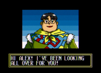 As you start Lunar Silver Star, you’ll see some scenes with Alex and his pet Nall. Ahh, the effects of the Sega CD. Press C to check out your menu, status, and so on to get acclimated to Lunar’s system. Head south and you’ll run into Ramus, a greedy and ambitious character who insists on going on an adventure with Alex. Not much else to do in Burg at this point in time, so talk to everyone and leave via the west exit.