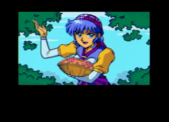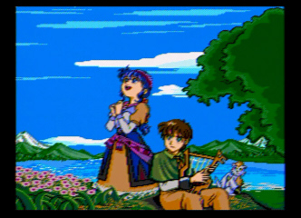 Once on the world map, head to the northeast of Burg (a few steps actually) to get to Burg Springs and go to the northeast to see Luna’s bouquet. Search it and you’ll get a scene with Luna singing and Alex playing the harp. Beautifully colorful but also shows the Sega CD’s strong suit (“FMV”). Luna will join you and bring up the treasure in your house (if you’ve searched Burg you’ve probably seen this locked chest). Notice that Luna has the Song function. Cascade raises attack power for Ramus and Alex and this is very useful for this initial period.