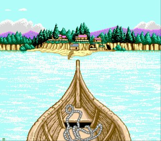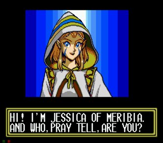 In the south of Vane is the teleport device, and a long distance west (and a little north) is the lakeside village of Lann (above). If you happened to have the chance to get a Long Sword in Vane your path will be much easier. Talk around in Lann and the second house to the west will be three people including Jessica, a great healer. The guy in the house will give you the ok to investigate in Lann and Jessica will then join you. At the docks to the west, she’ll beat up the guy until he lets you take the boat to Lann Isle, which has a Magic Recovery Point.