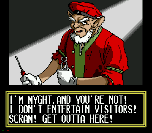 Your party is demoralized from the wasted effort, so Psychotron out of the cave and rest up. Go to Lyton, but continue to the southeast until you get to Tamur. Head east, north and west and talk to Tempest. He’ll challenge you to a “fight”, which consists of the two of you walking over eachother. Exciting. Well he’s your friend now so that’s great, but head back to town and go north into the top building. Laike will throw a proposition at you so accept it and he’ll join and the other three will wait. Exit via the north part of town and follow the path to Myght’s Lab.