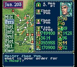 Now a common problem Yuan Shao has is that’ll he spend all his money because he feels he needs 700,000 soldiers by July of 189. Why he does this I don’t know, but he can ounce you in a second if he wants with those kinds of numbers. However, he is also lower on food generally, as you can see if you spy. Sometimes he’ll destroy Kong Rong or Liu Bei or yourself, but sometimes he’ll attack no one and just implode in Nan Pi. The one thing working in your favor is food, assuming you keep a better supply of yours than Yuan Shao does (easy to do). If he fights you, just send troops to Yi Jing and run around until time runs out or his army’s food runs out.